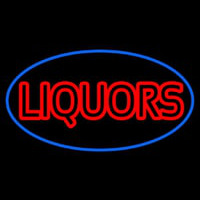 Liquors Oval With Blue Border Neon Skilt