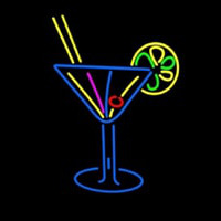 Stylized Cocktail Or Martini Glass With Lime Slice Neon Skilt