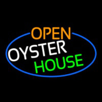 Open Oyster House Oval With Blue Border Neon Skilt